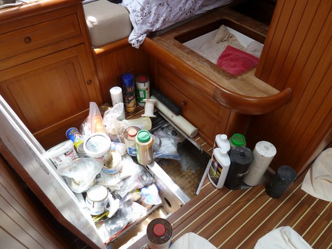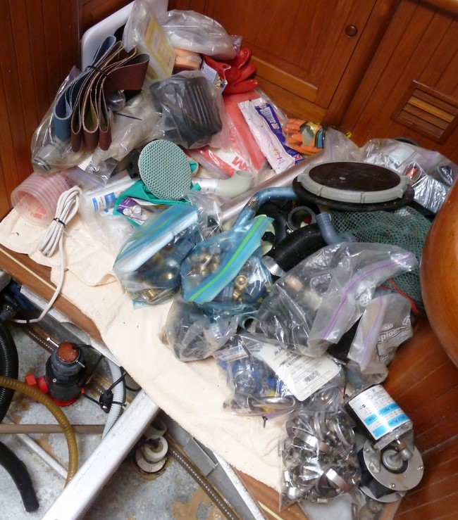 On remet à demain le rangement de l'accastillage . Ca coince ... il y en a un bon stock.