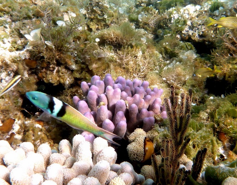 Il y a peu de corail mais il est très beau et original par rapport au reste des Caraïbes .