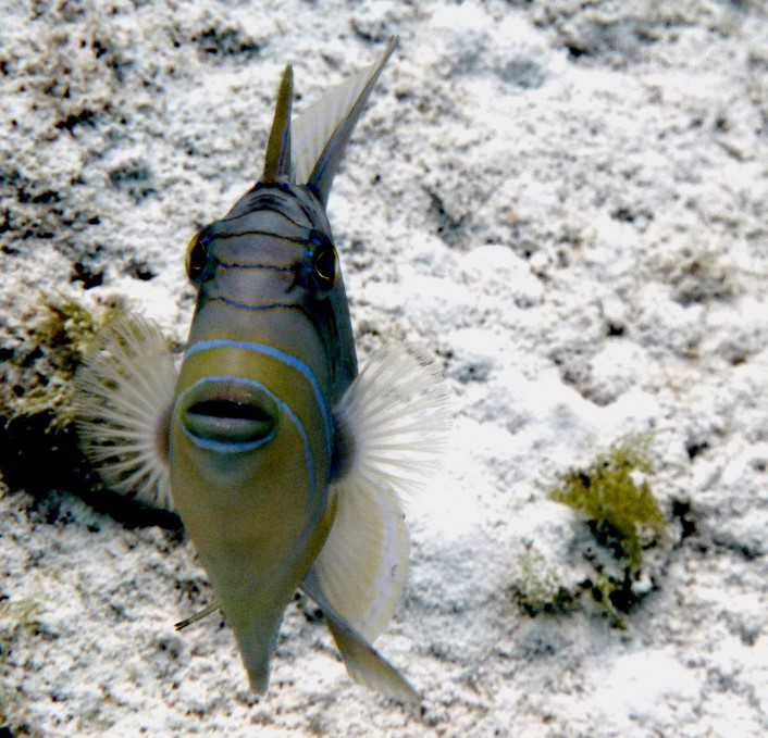 J'ai vu 2 poissons que je n'ai encore jamais pris en photo : 1 murène perlée ou porcelaine . Cela dépend des livres ! et un poisson 24 heures ou poisson pierre .