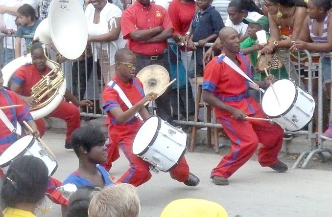 Après vient la fanfare de la police de Nassau très réputée , localement .