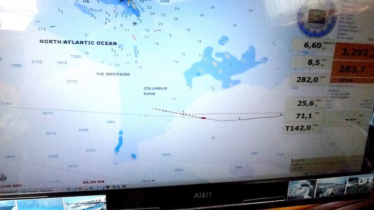 Le point rouge + noir = notre arrivée sur les Bahamas .