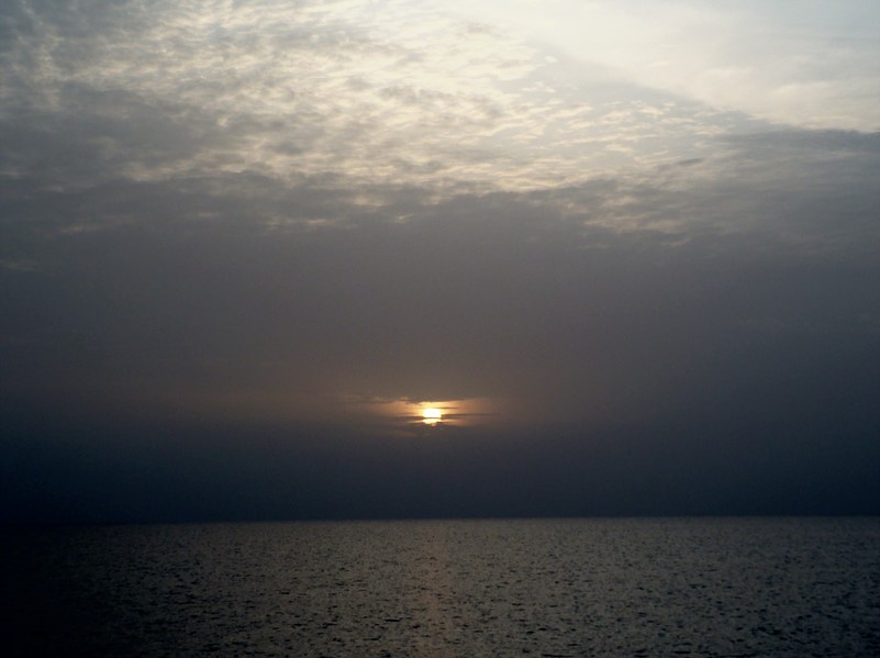 Après 1 navigation toujours sans intérêt mais moins pénible : moins de vent contre nous , la mer moins agitée , et en plus , semble-t-il , le courant avec nous .
