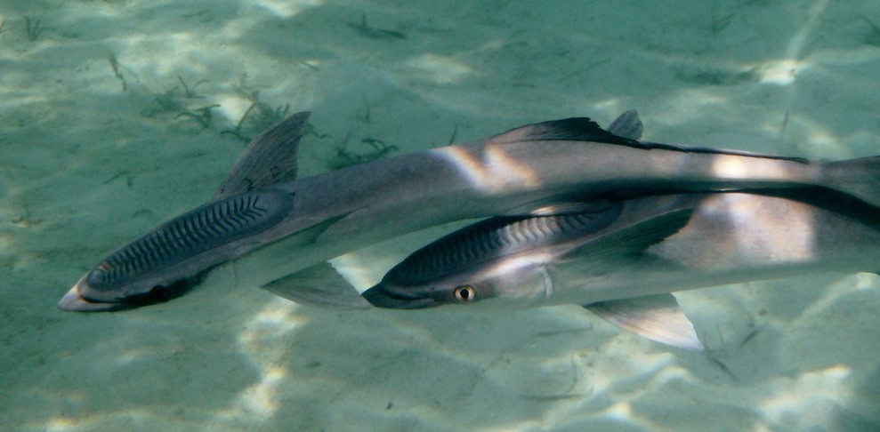 3 poissons rémoras tournent autour d'Australe .