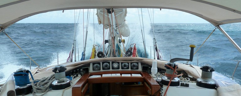 Navigation sans intérêt et même pas très agréable car nous étions au moteur , avec du vent à 15 noeuds de face complètement et la mer bien formée .