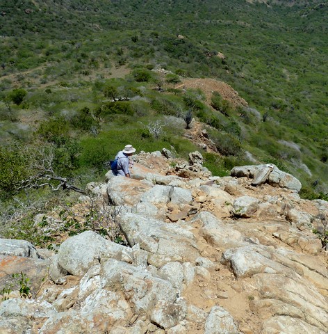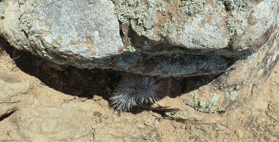 Il est derrière les arbustes d'acacia ( épineux très agressif ) .