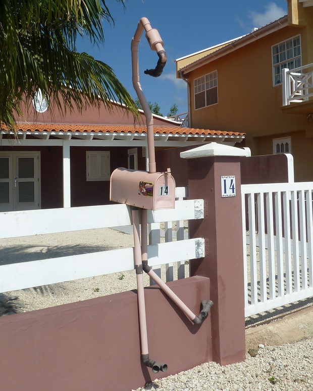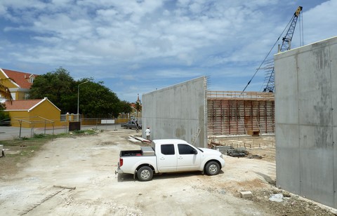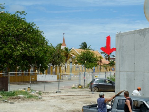 En fait ils agrandissent l'ancienne prison devenue trop petite . Elle est déjà installée dans le centre mais très discrète , cachée entre d'autres bâtiments . Cette nouvelle annexe , elle , est placée bien évidence à un carrefour , à coté de la poste et à 50 mètres de la rue principale " la caya grande " Cela sera pratique pour les prisonniers , ils auront tout sous la main . Mais par contre en prenant une telle décision , ils ( les gens du gouvernement de Bonaire ) ont certes pensé aux prisonniers mais sûrement pas aux touristes ! .