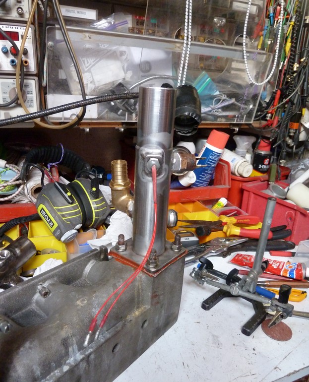 Il a refait le pot d'échappement et mis 1 sonde de température reliée à son micro -contrôleur qui déclenchera 1 alarme en cas de température trop élevée .