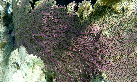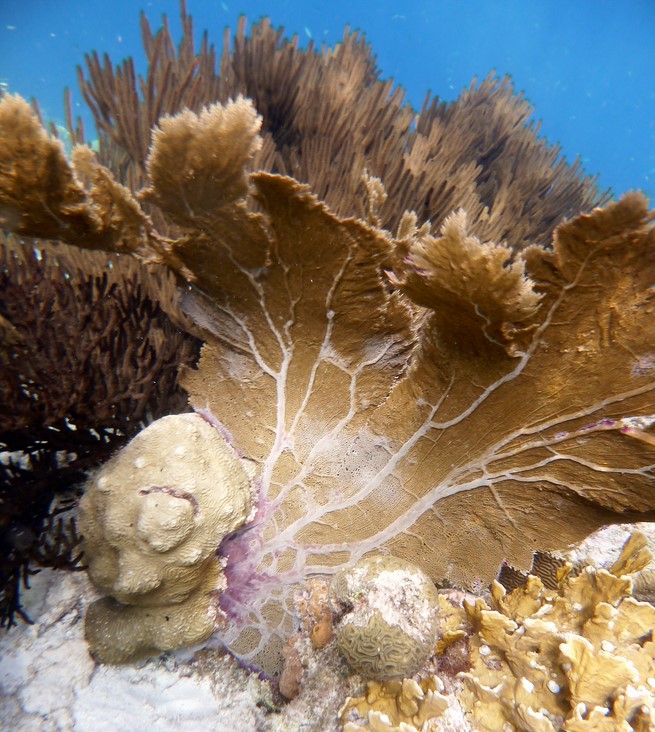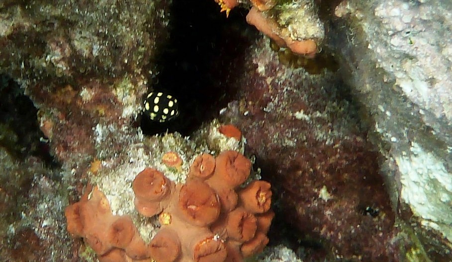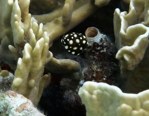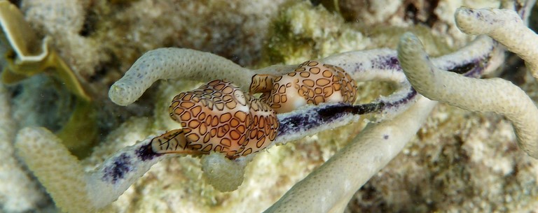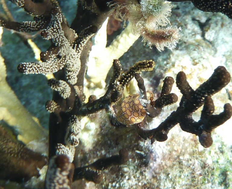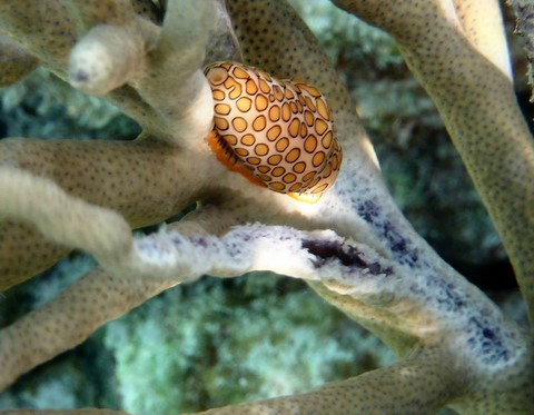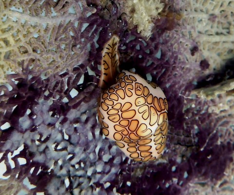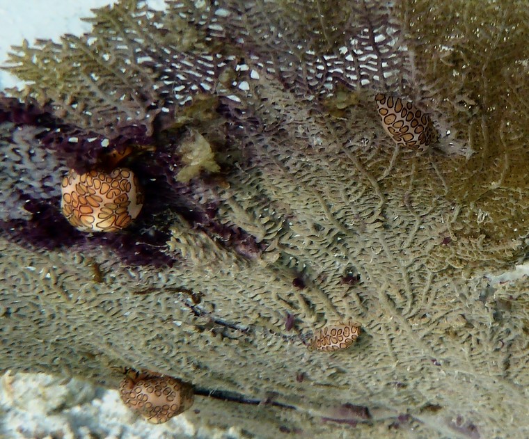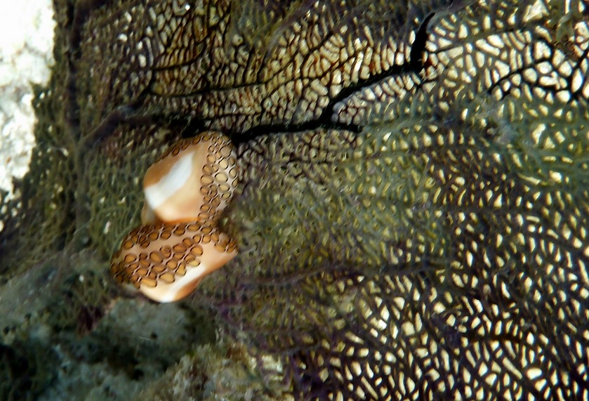 Ces fameux flamingo tongue ( = je crois langue de flamand rose )mangent les supports sur lesquels ils ont grimpé . On peut observer les traces de leur passage .