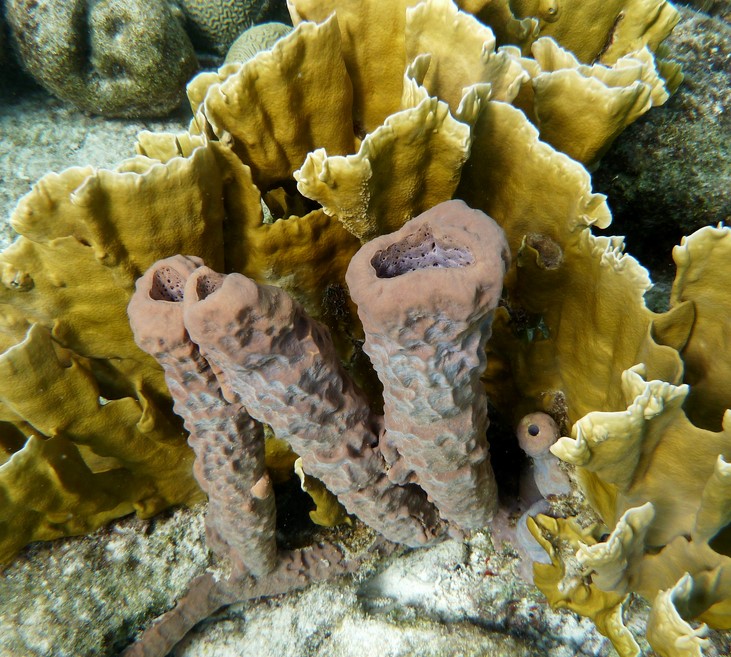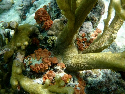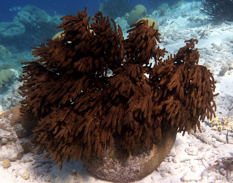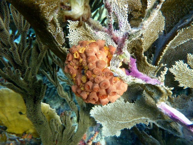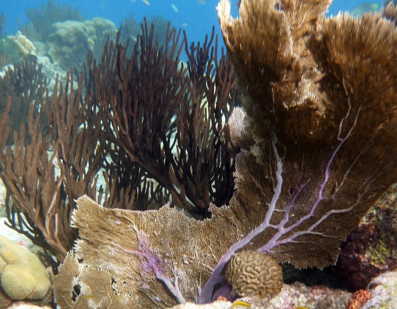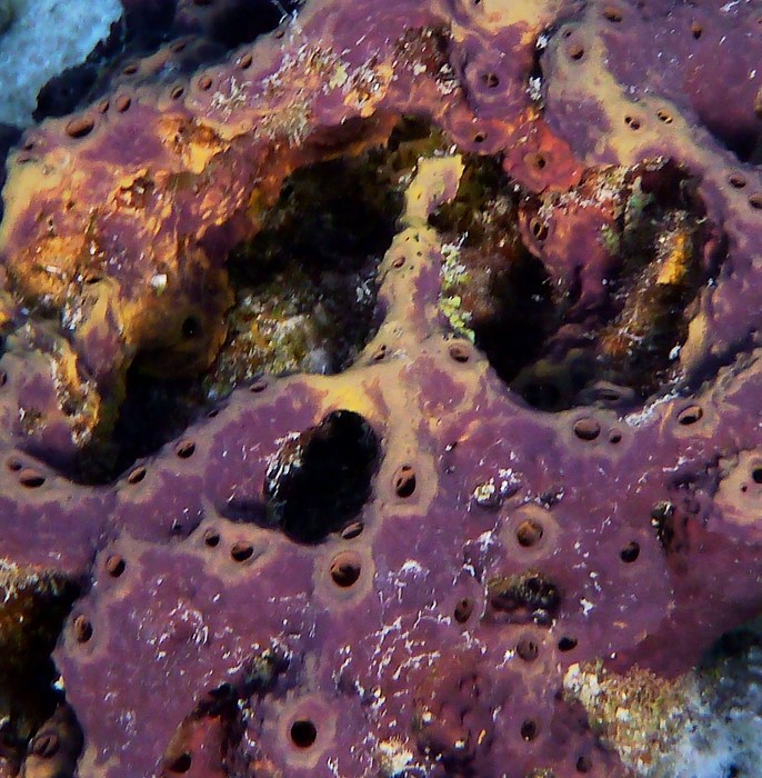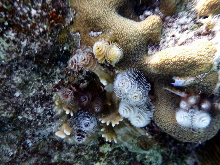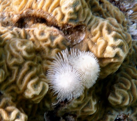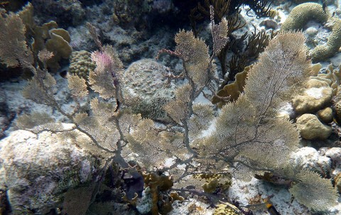 Ces fameux flamingo tongue ( = je crois langue de flamand rose )mangent les supports sur lesquels ils ont grimpé . On peut observer les traces de leur passage .