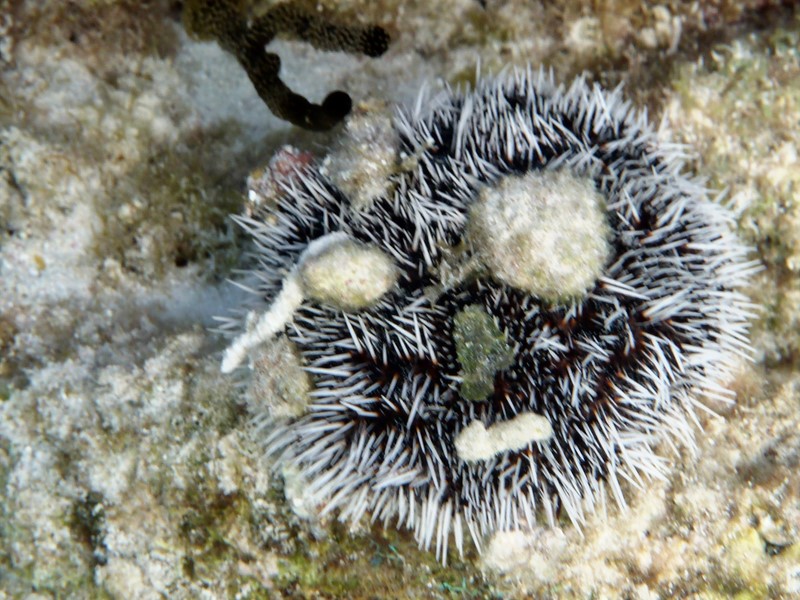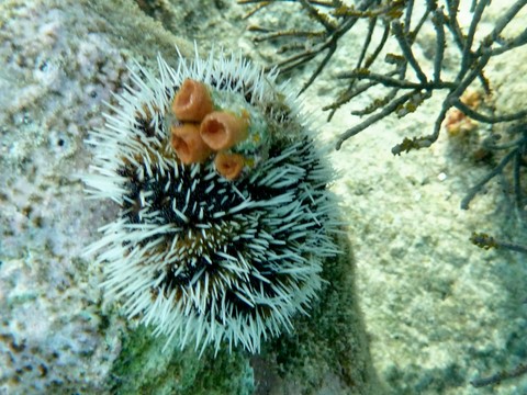 C'est la 1° fois que je vois 1 oursin avec quelque chose de vivant sur lui .