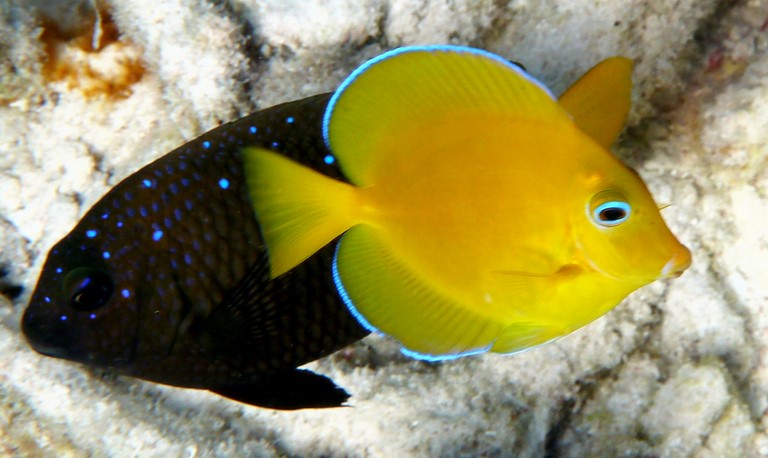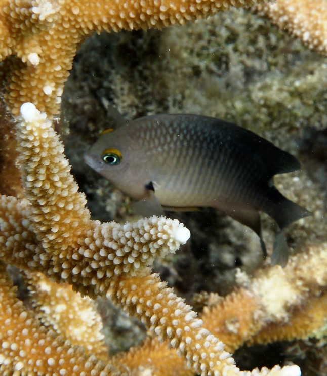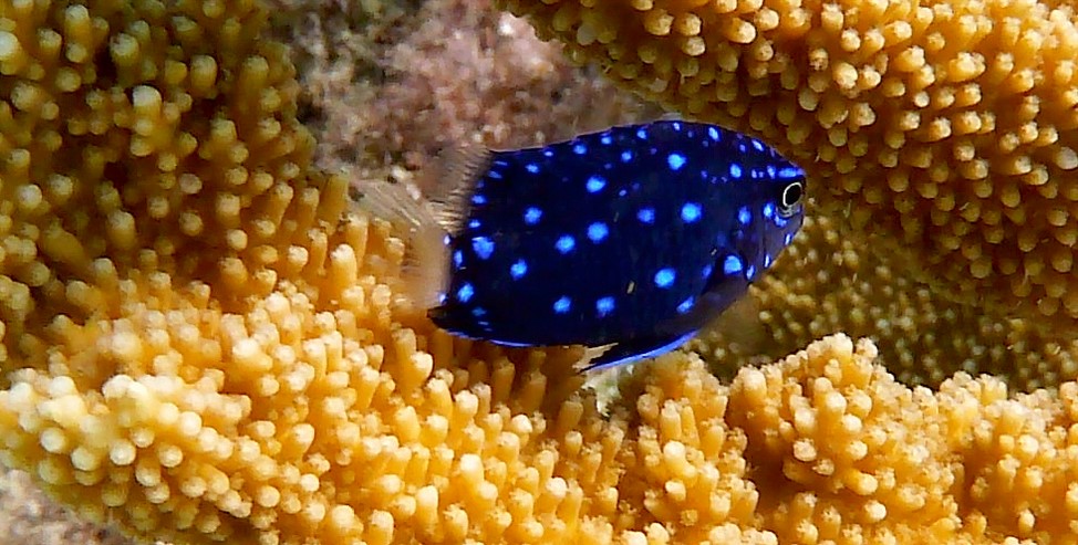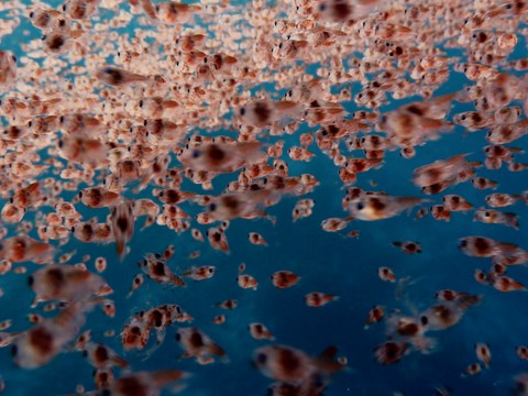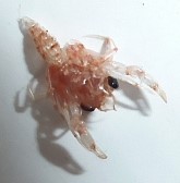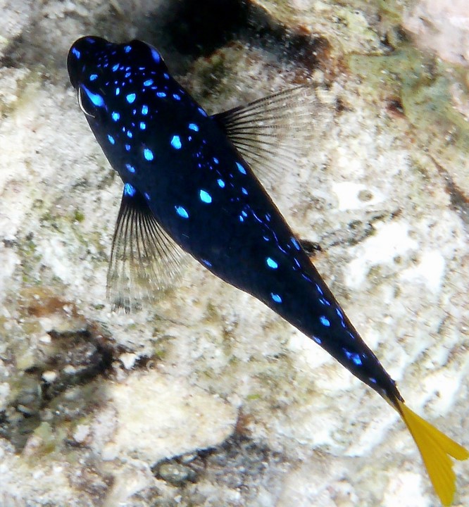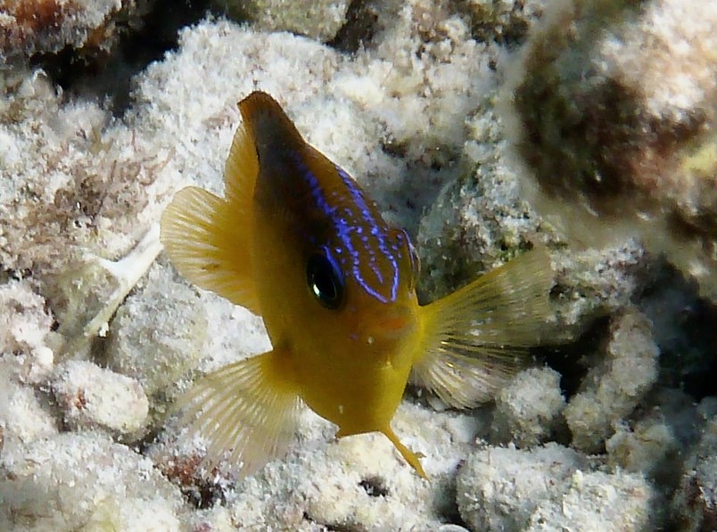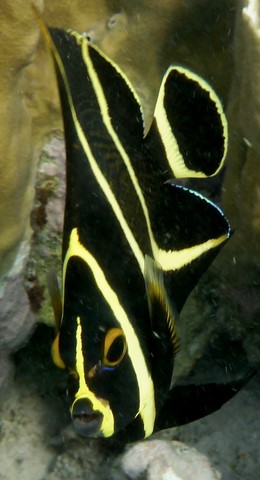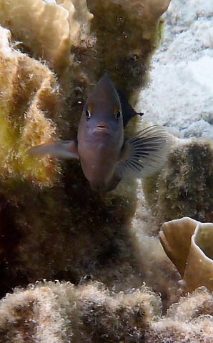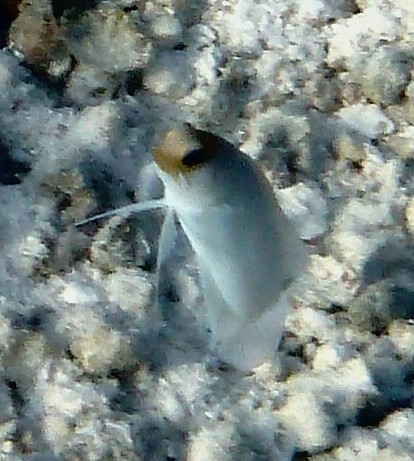 Dans mon livre , ma bible en matière de poissons , il est écrit que le bébé ( eux écrivent le juvénile = + chic ) a la taille d'un petit pois ! et avec mes yeux de myope je l'ai vu ! Je suis très fière !