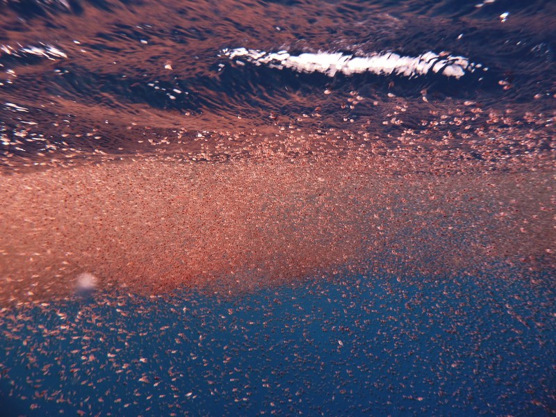 Je suis tombée sur des milliards de crevettes de la nourriture à requin baleine