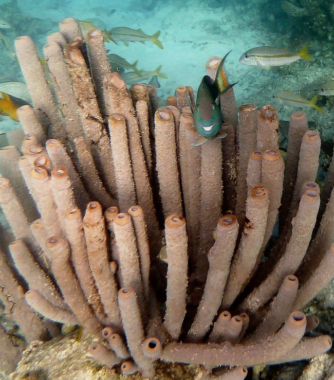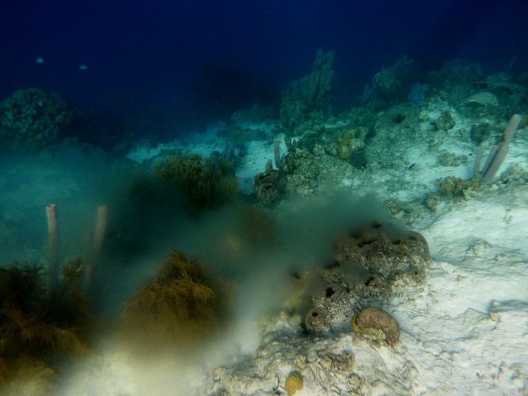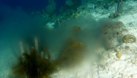C'est la 1° fois que je vois ces nuages laiteux ... et j'ai compris : ce sont les lâchers de spermatozoïdes des éponges .