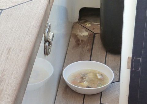 On cherche du caoutchouc pour refaire le joint du radiateur . Impossible d'en trouver à Bonaire et les réserves du bateau sont épuisées .... ouf on en a trouvé 1 petit bout dans les fonds .