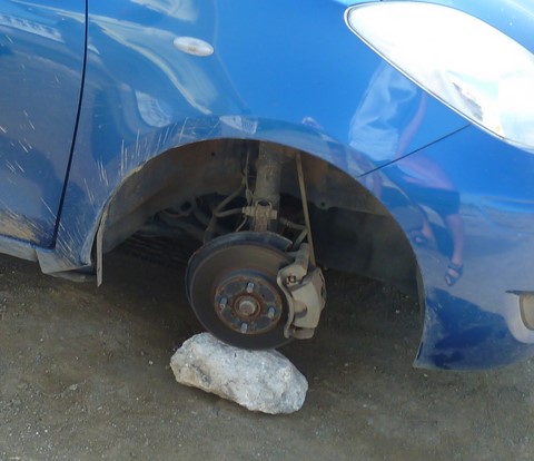 Donc 1 roue de notre voiture de location a été volé dans la nuit . Dommage le dernier jour !