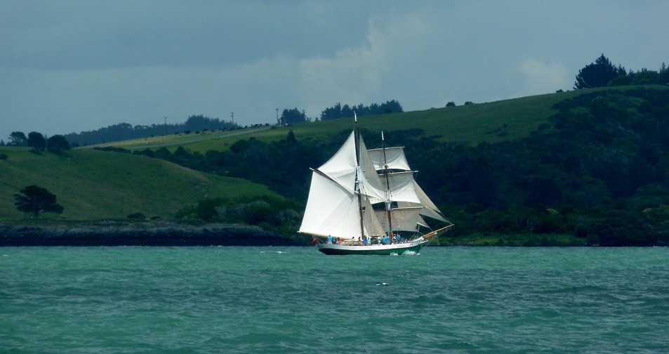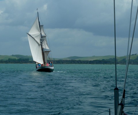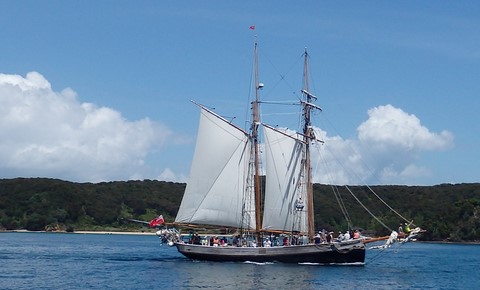 Et on croise la goélette de Russell .Il y en a du monde sur le bateau !