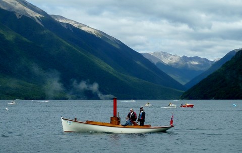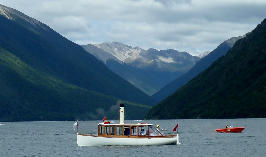 Des bateaux encore mais des anciens , à vapeur et sur un lac .