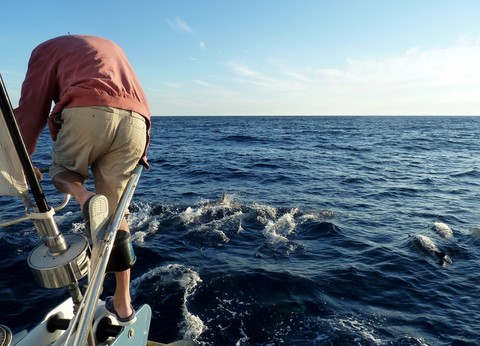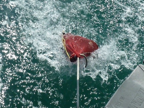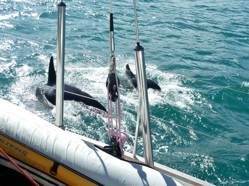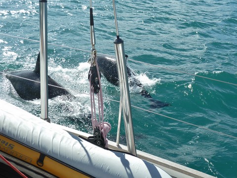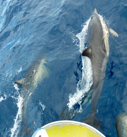 Ensuite ils passent sous le bateau et ressortent , Oh merveille , à moins d'1 mètre du bateau .