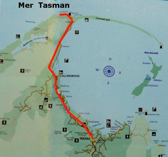 Nous sommes partis en direction de Takaka , sur le bord de mer .