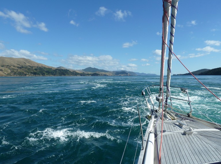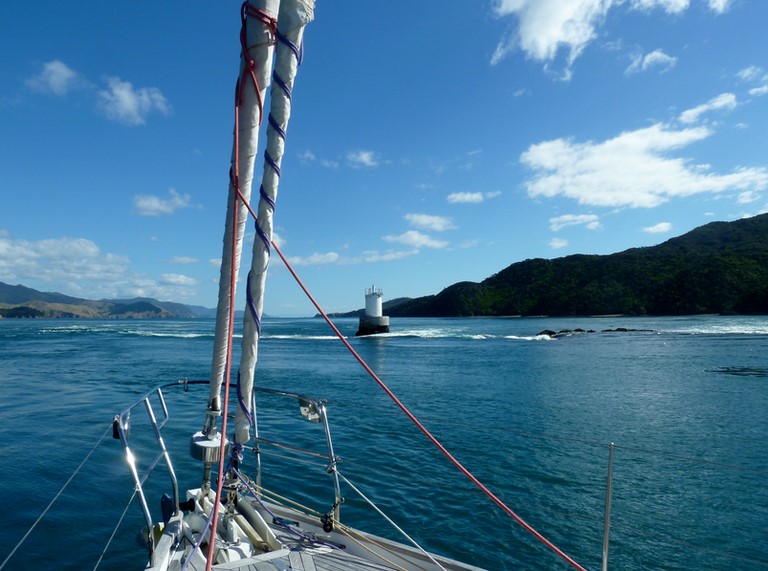 C'est un passage très rétréci avec un grand volume d'eau qui doit passer donc il y a beaucoup de courant , jusqu'à 13 noeuds quand même .et comme les moteurs nous permettent d'aller à 7-8 noeuds . Il faut mieux prendre cette passe dans le bon sens !