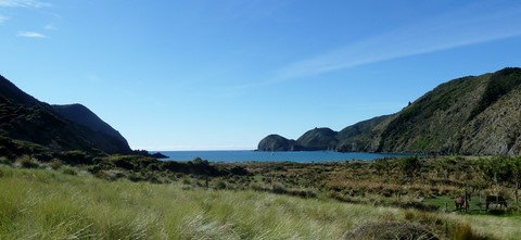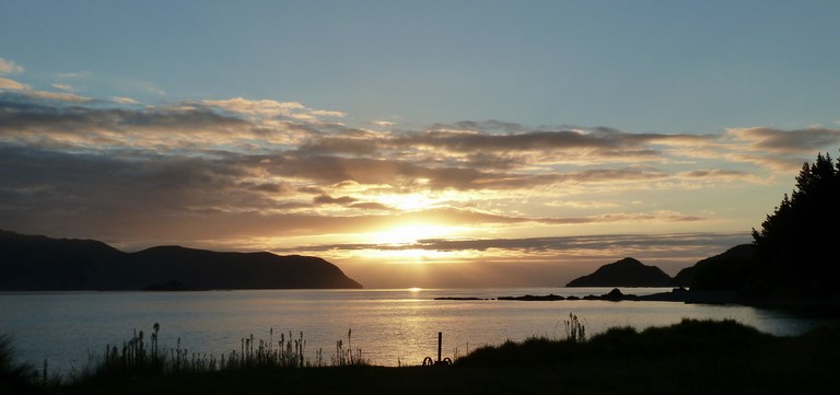 Coucher de soleil sur le cap Palliser qui est avant le fameux Détroit de Cook .