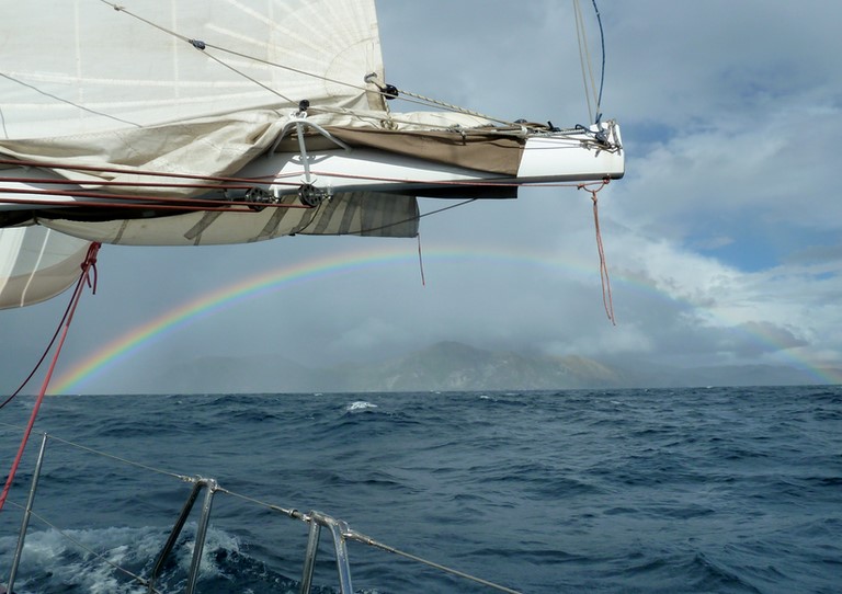A l'arrivée sur d'Urville , un arc en ciel complet nous accueille .