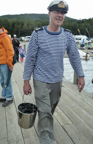 Le capitaine avec son sceau de charbon pour faire de la vapeur .