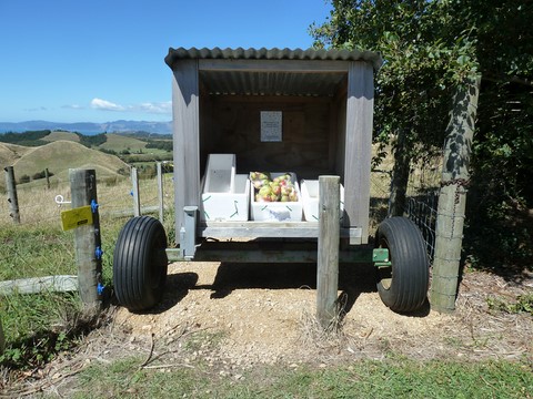 Des pommes à vendre sur le bord de la route ... la confiance existe encore en NZ c'est beau !