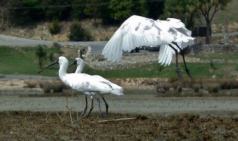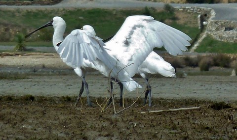 j'ai du faire des ruses de sioux pour les approcher en jouant avec le vent mais au bout de la 3° approche j'ai enfin pu prendre en photo des spatules royales .