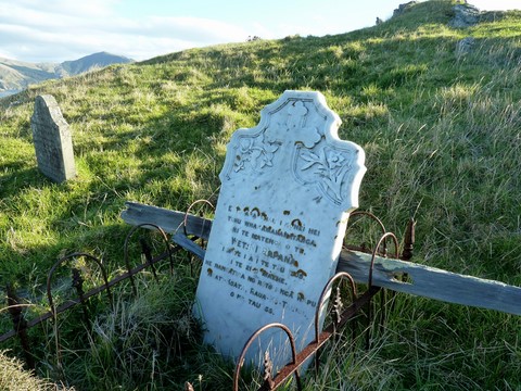 A mi-pente 2 tombes maori dont une belle en marbre .