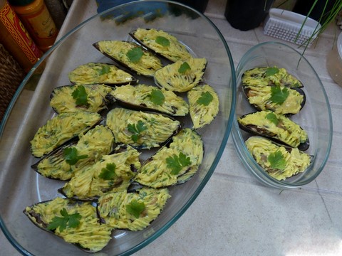 Hier soir nous avons mangé des moules farcies et nous traînons derrière Australe les moules restantes .