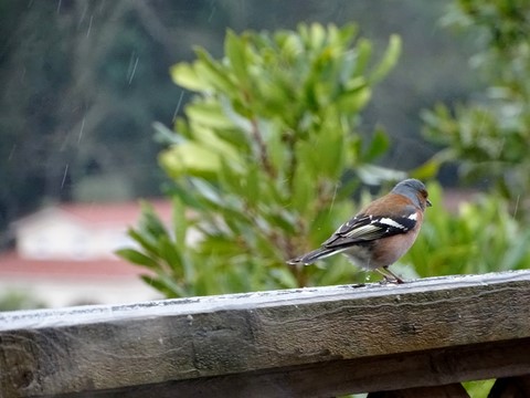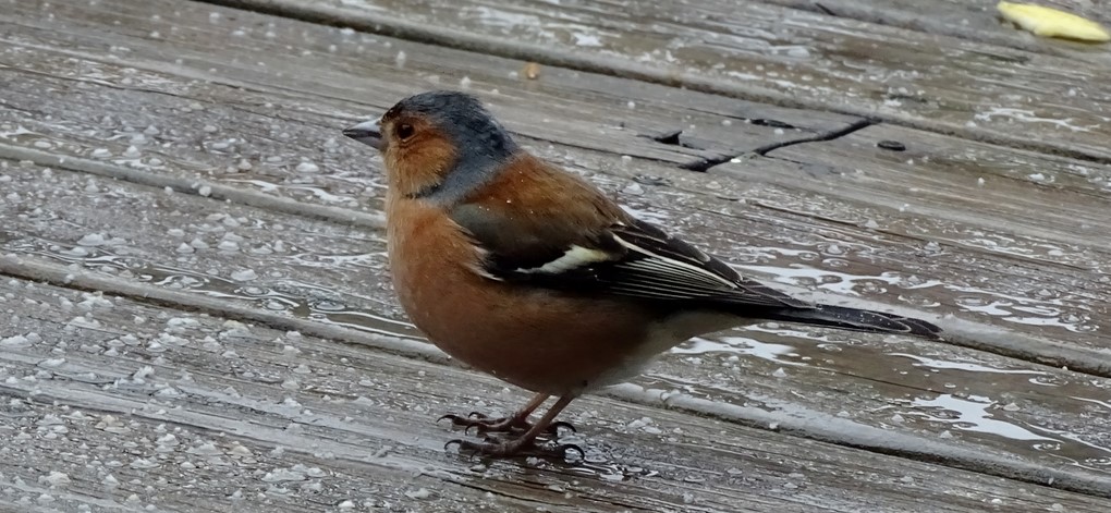 Même sous la pluie , elle revient picorer .