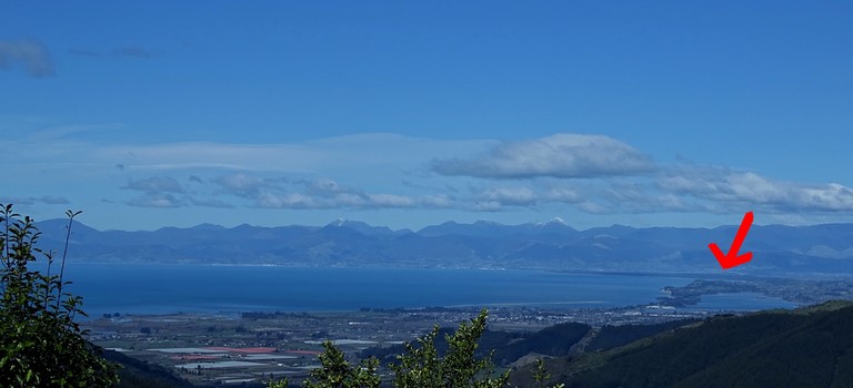 Au loin l'aglomération de Nelson et Rabbit Island devant .