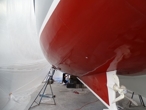 Donc les travaux se passent toujours très bien sauf ... l'antifouling au silicone qui a été envoyé de France sans aucune vérification !