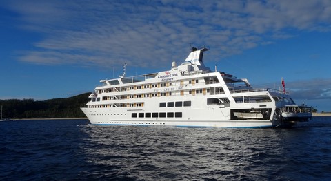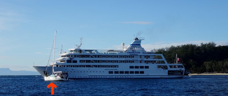 Les gens du paquebot n'ont même pas pu débarquer car leurs barques ne pouvent pas passer dans le corail comme notre super annexe .