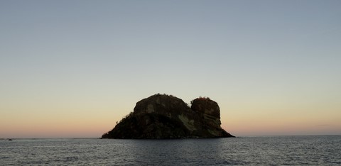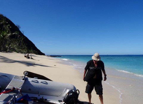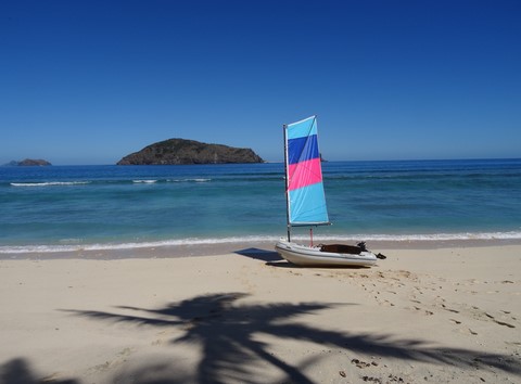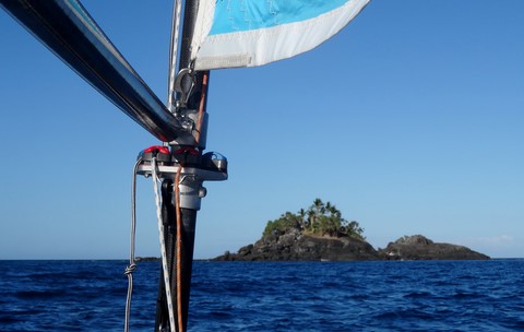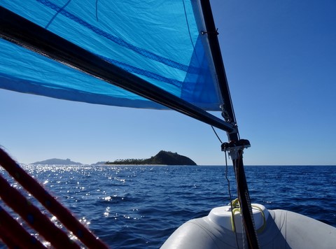 Entre le travail ( doudou ) et le nettoyage ( moi ) petite escapade en annexe à voile sur l'île d'Eori , à 2 ,5 Miles .