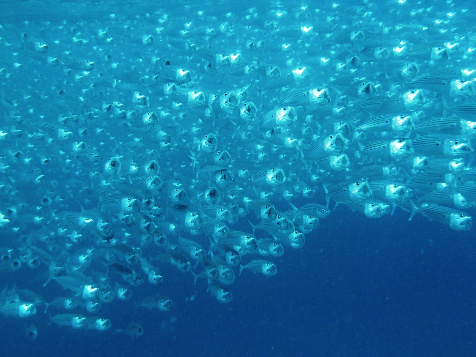 Des poissons aussi mangent du plancton , ils sautent partout et ont la gueule ouverte comme les raies