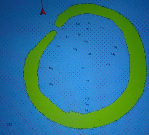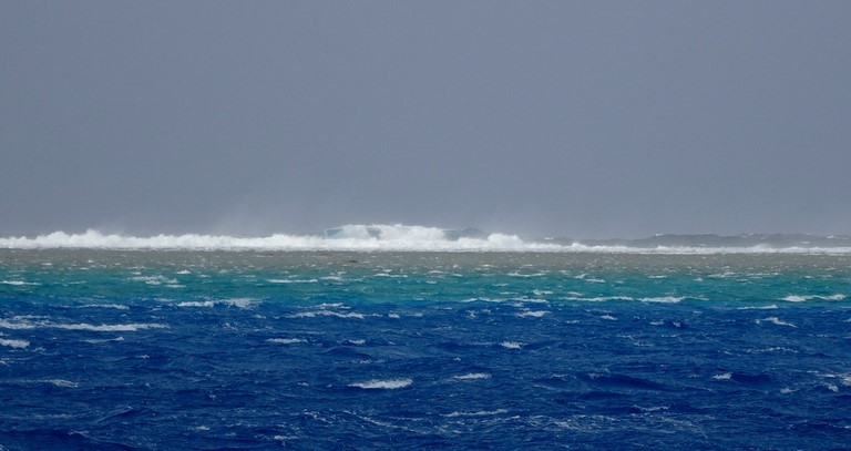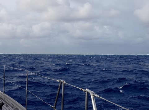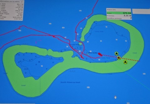 Après une navigation assez agitée à cause d'une méchante houle , nous nous arrétons en pleine nuit à Minerva Sud d'abord .