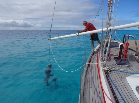 Nous allons mouiller plus loin dand le vert ou l'eau est transparente ... ca fait longtemps .