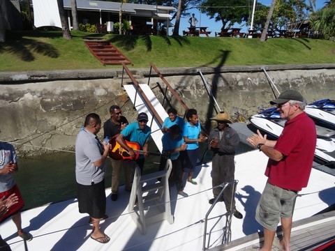 Accueil à la marina de Vuda en musique ... c'est très sympa .