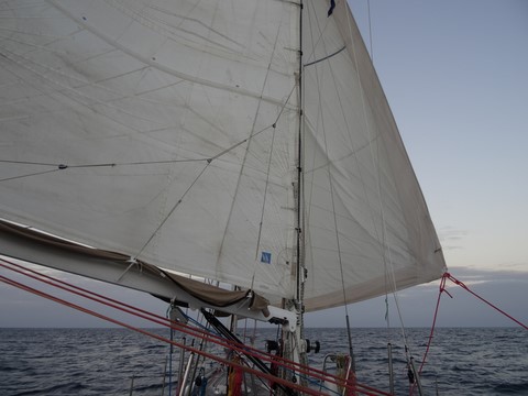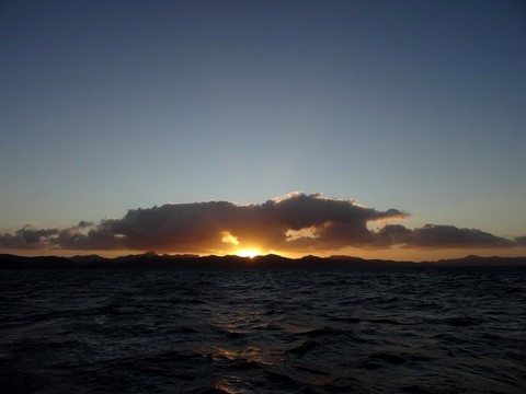 Nous changeons de mouillage car le vent et la houle se sont levées et rendent le mouillage pas agréable du tout .