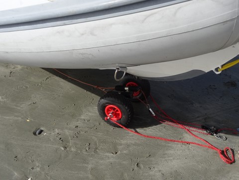 Nouvelle expérimentation des roues avant , pour le transport de l'annexe , inventées par le doudou .