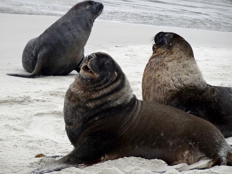 Nous sommes arrivés à Lord Rivers et nous partons à la recherche des lions de mer .