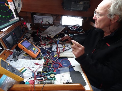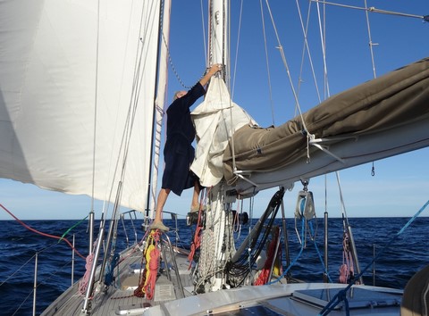Le doudou en robe de chambre installe la drisse de la GV ;
