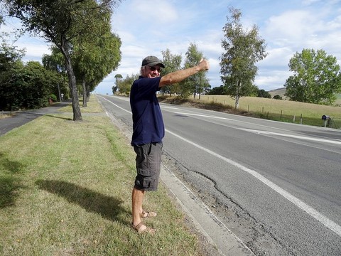 En route pour Dunedin avec un amateur de musique qui a eu le mérite de nous prendre !