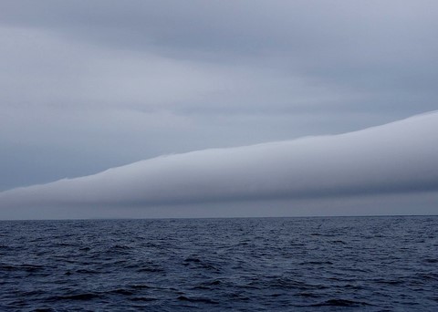 Et un étrange nuage nous dépasse de chaque coté du bateau .