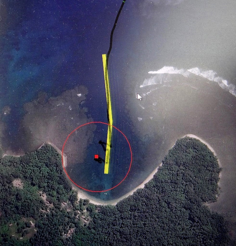 On comprend que nous sommes le 2° bateau à jeter l'ancre Ici .
