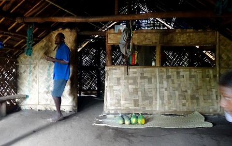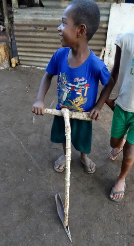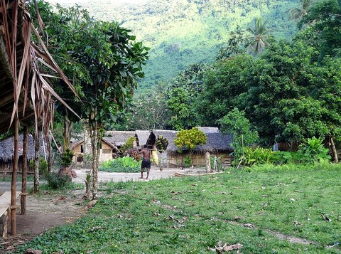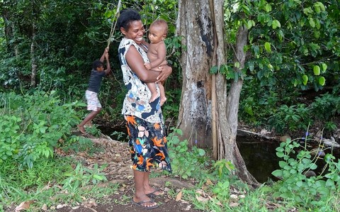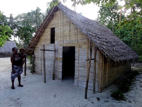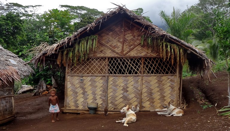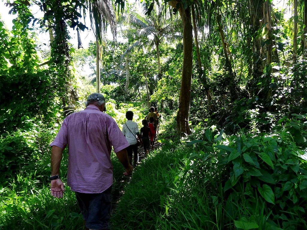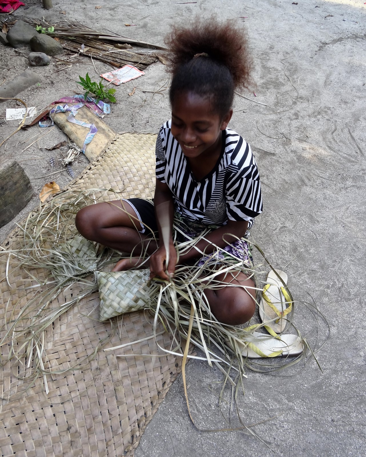 Nous faisons la découverte du village avec Rose , la femme du fils du chef .