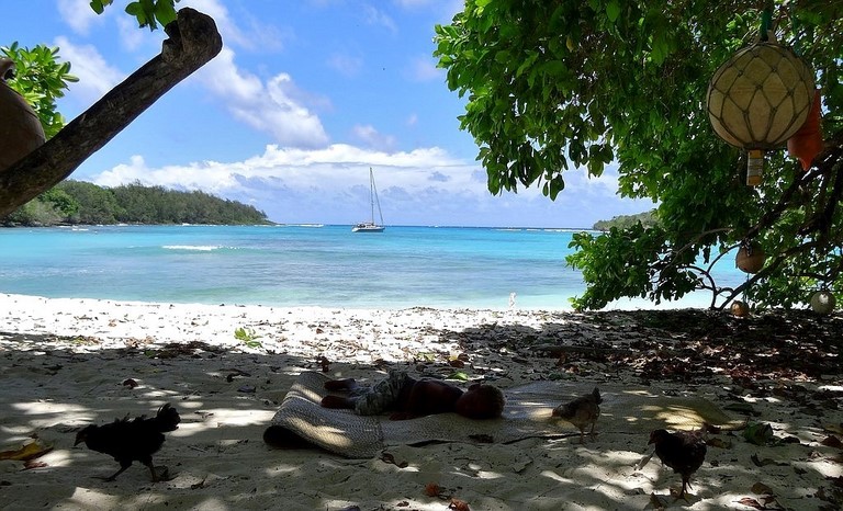 Pour la sieste , reconversion des filets de pèche en hamac .