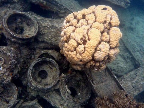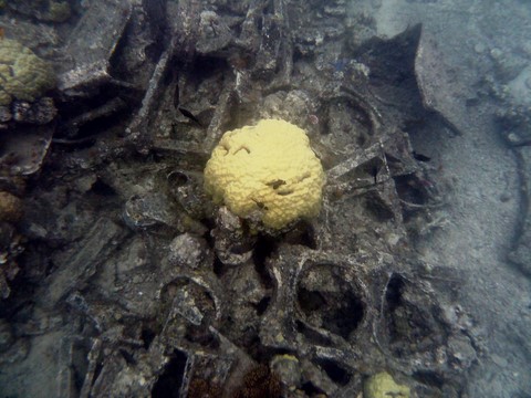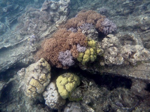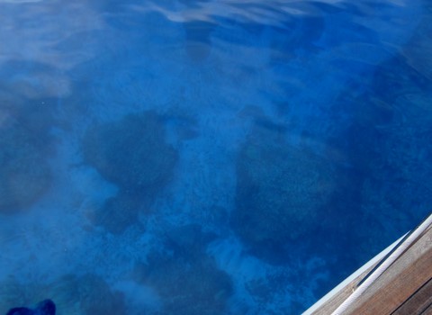 La bouée rouge est notre " orin " car nous avons mouillé par 15 mètres avec des patates un peu partout